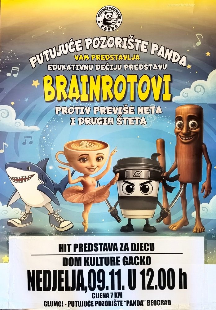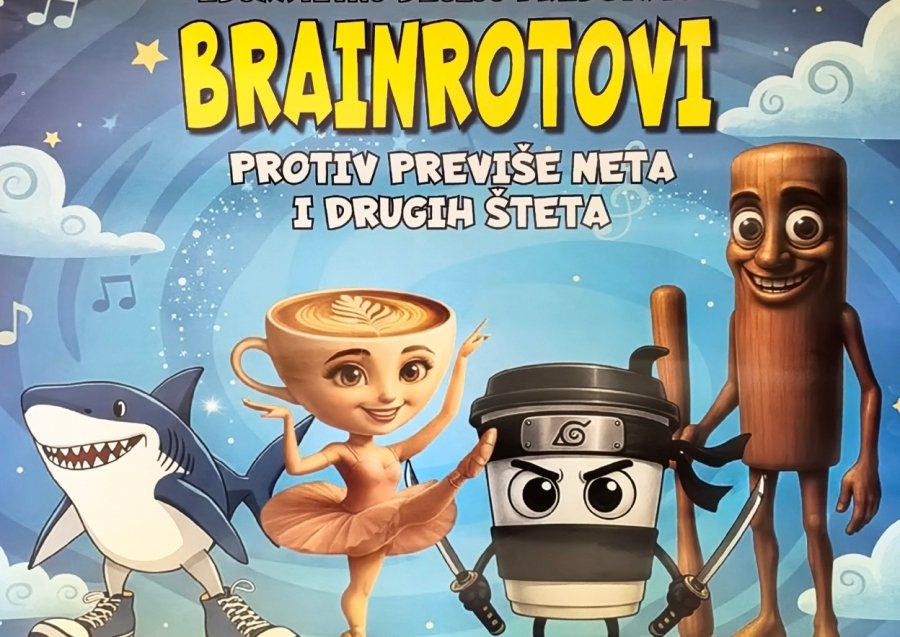 Putujuće pozorište „Panda“ iz Beograda u nedjelju u Domu kulture, u 12 časova predstaviće edukativnu, interaktivnu dječiju predstavu pod nazivom „BREIN ROTOVI“ – protiv previše neta i drugih šteta.