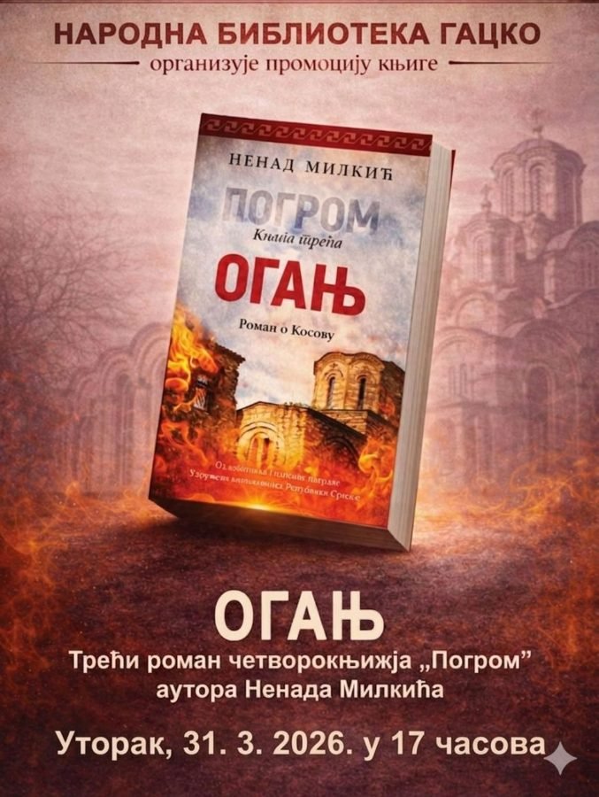 Данас промоција романа „Огањ“