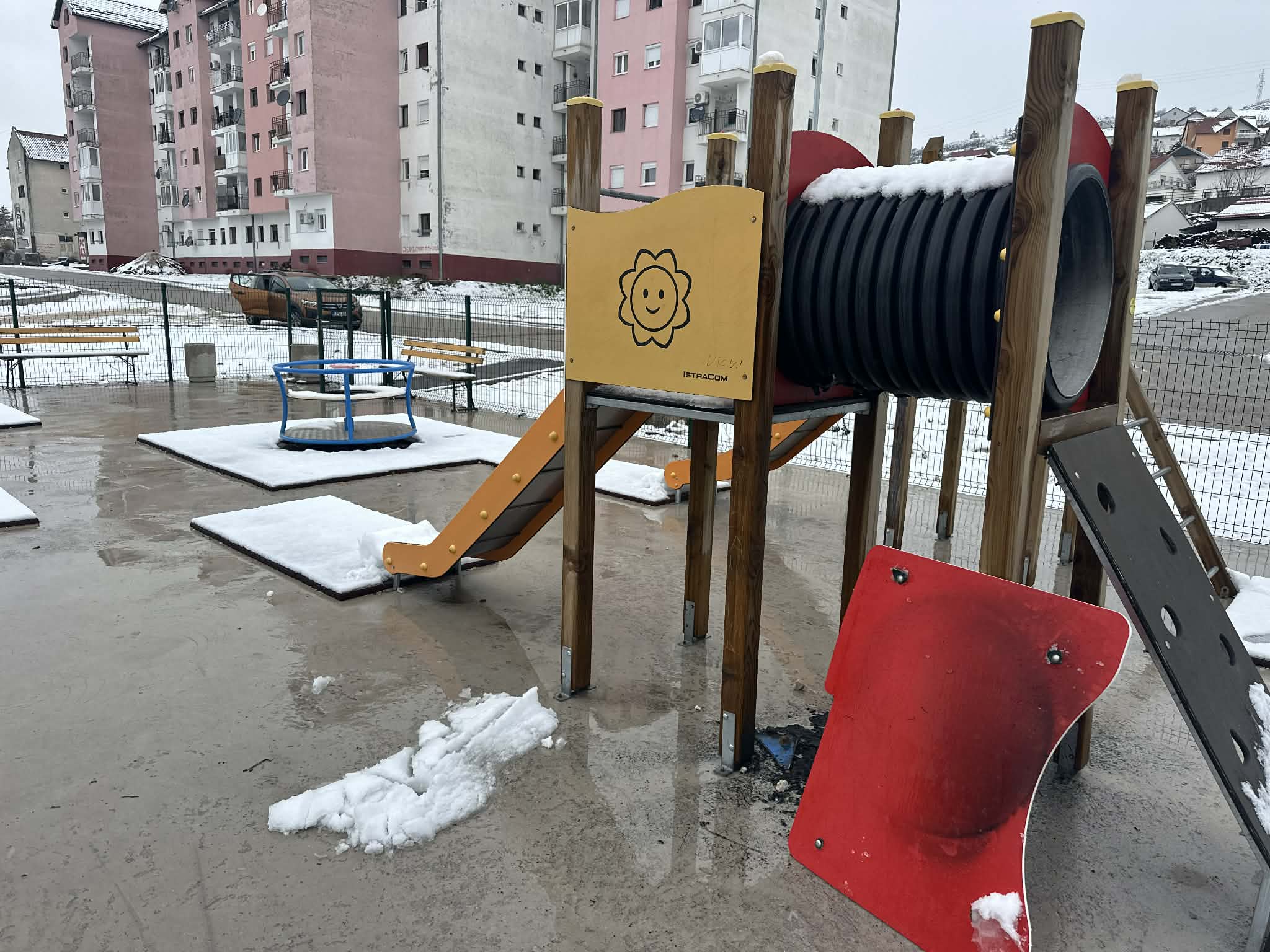 Наиме, запаљен је тунел на тобогану, чиме је игралиште оштећено, а безбједност дјеце доведена у питањe.