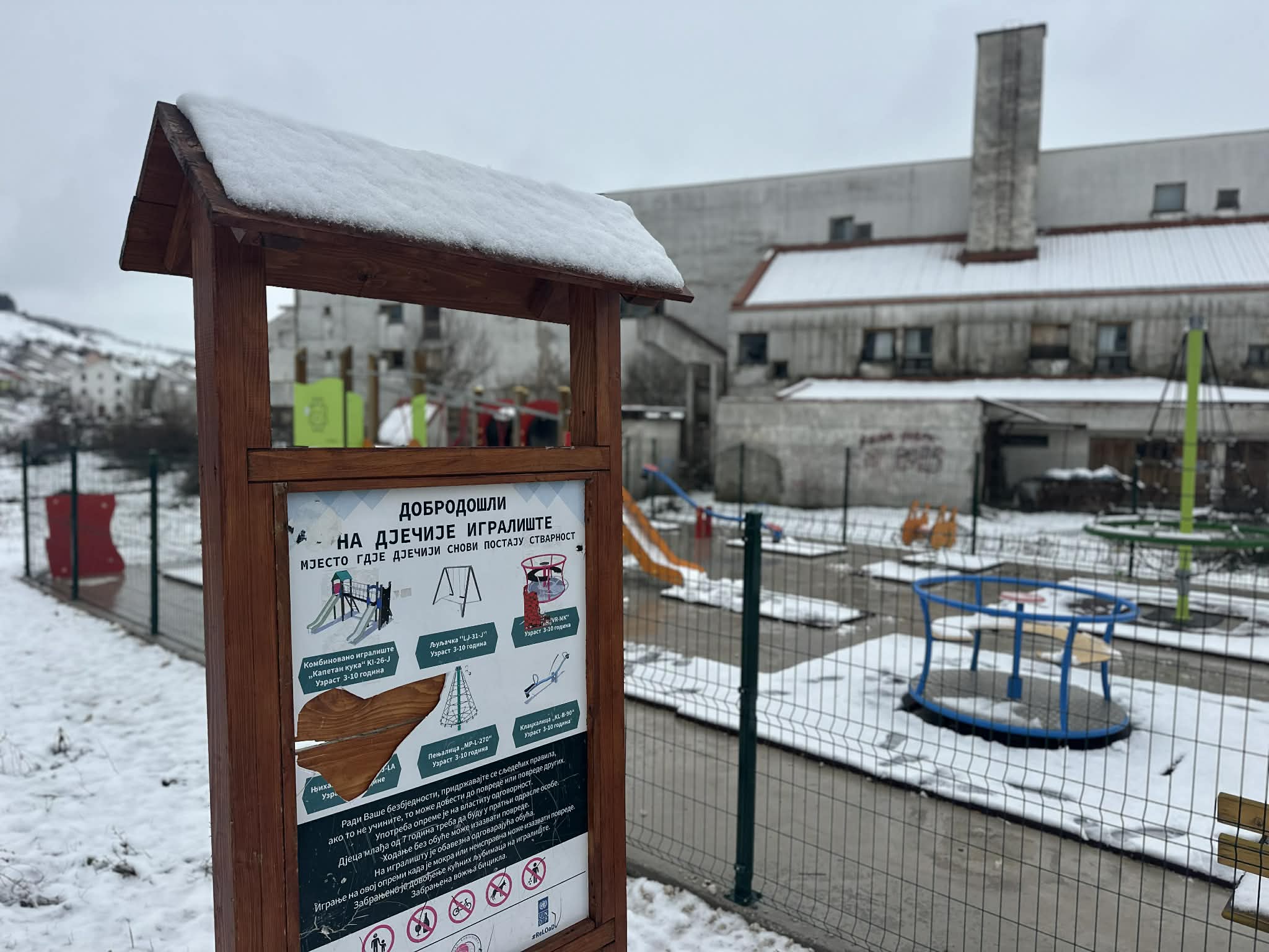 Оштећено дјечије игралиште иза Самачког хотела