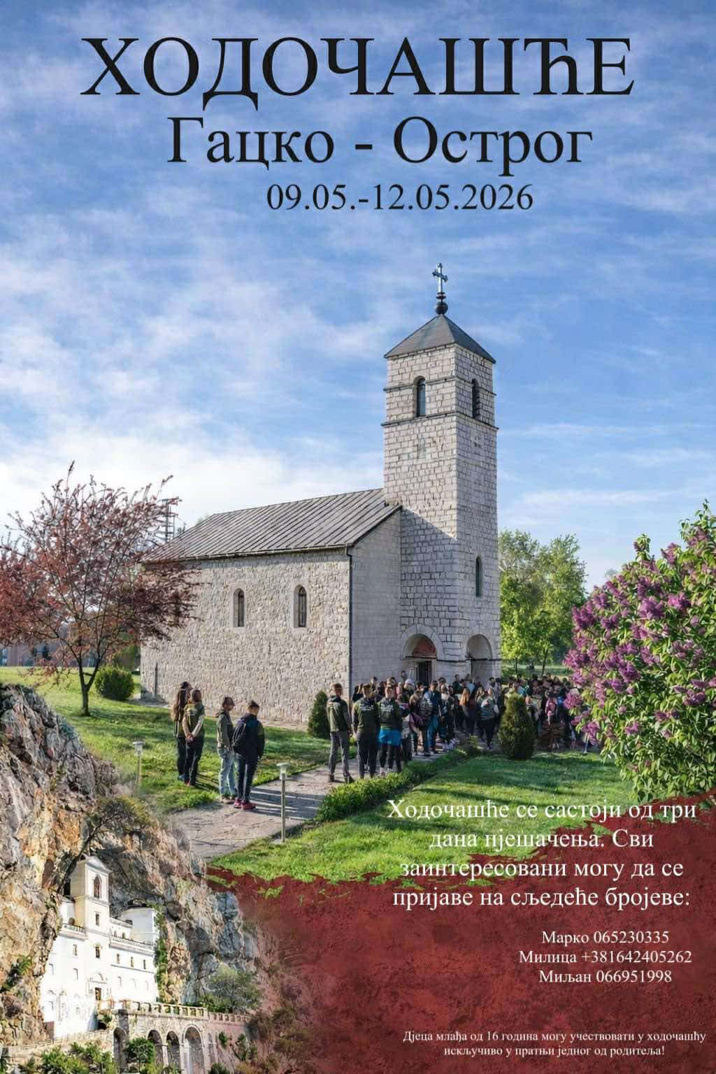 I ove godine iz našeg grada, na radost vjernog naroda, biće organizovano hodočašće od Gacka do manastir Ostrog i to tradicionalno od 9. do 12. maja.