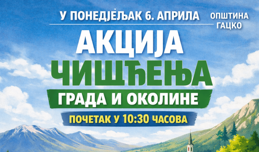Општинска управа општине Гацко, у сарадњи са ЈП „Комус“, у понедјељак, 6. априла, покреће акцију чишћења градског подручја и околине, са почетком у 10.30 часова.